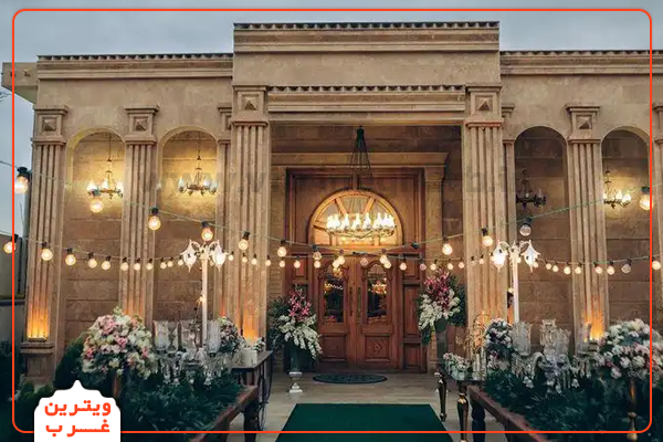 دسترسی به باغهای مجلل، تالارهای لوکس و عمارتهای اختصاصی در غرب تهران با فضای سبز دلانگیز، استخر، ورودی اختصاصی عروس و داماد، جایگاه VIP مهمانان و دکوراسیون متناسب با فصل.